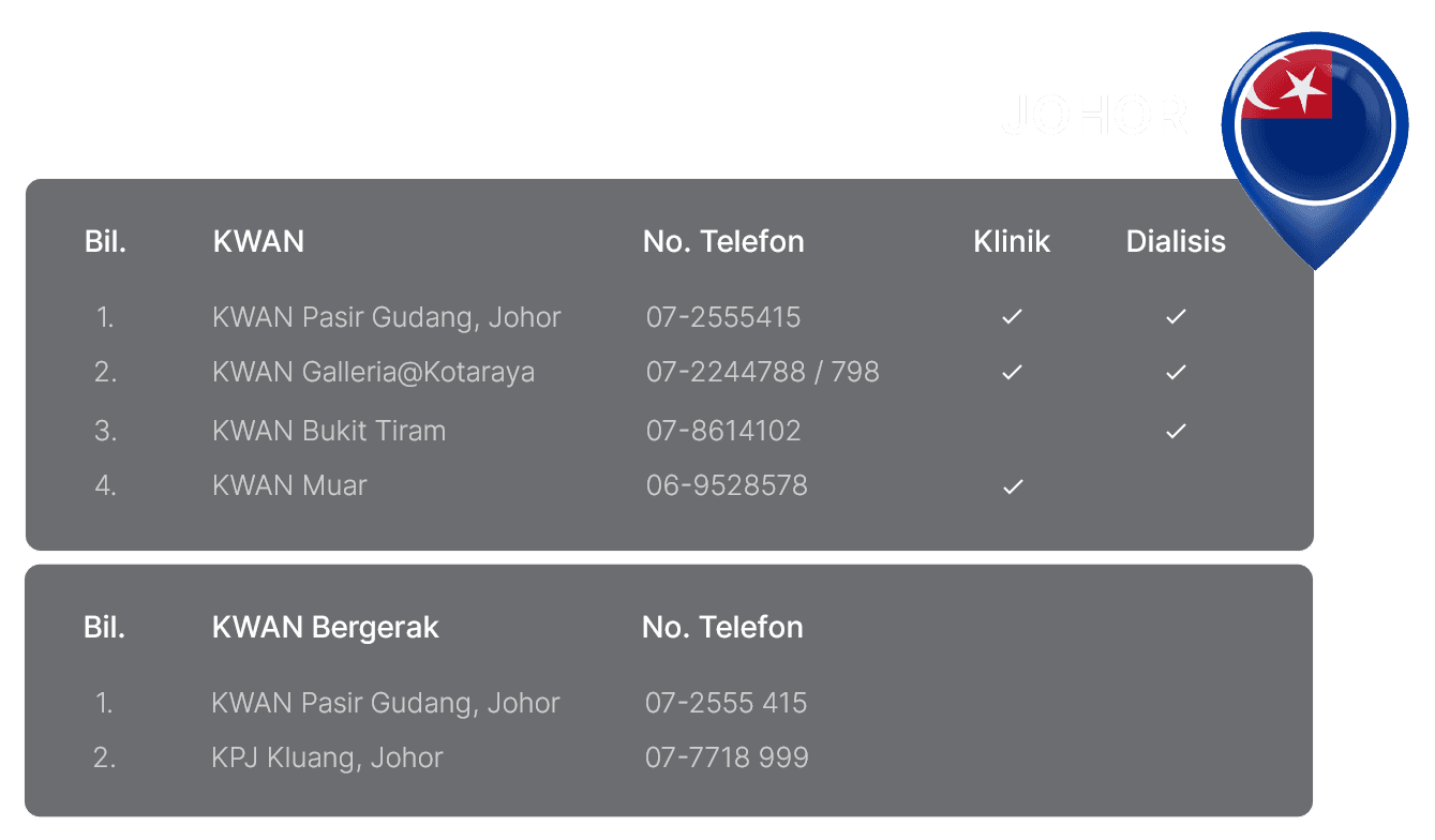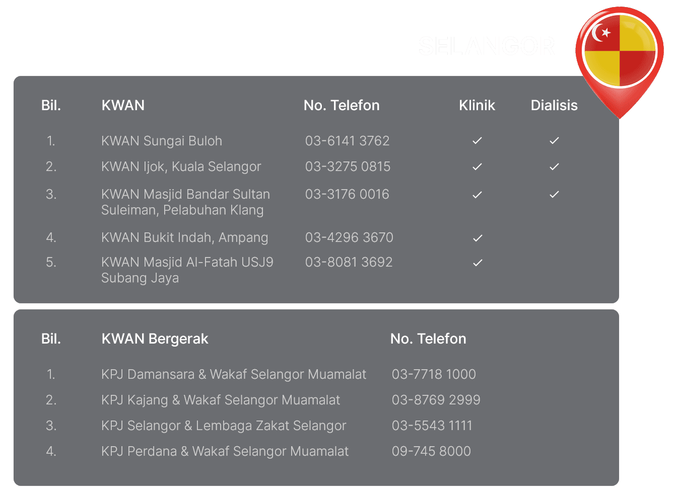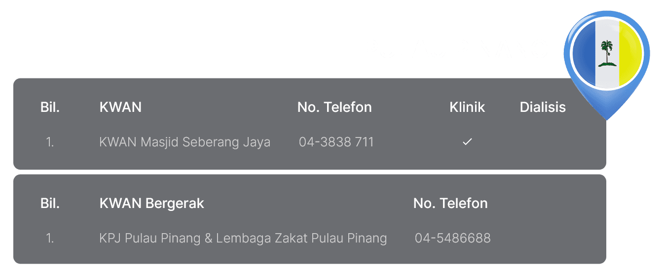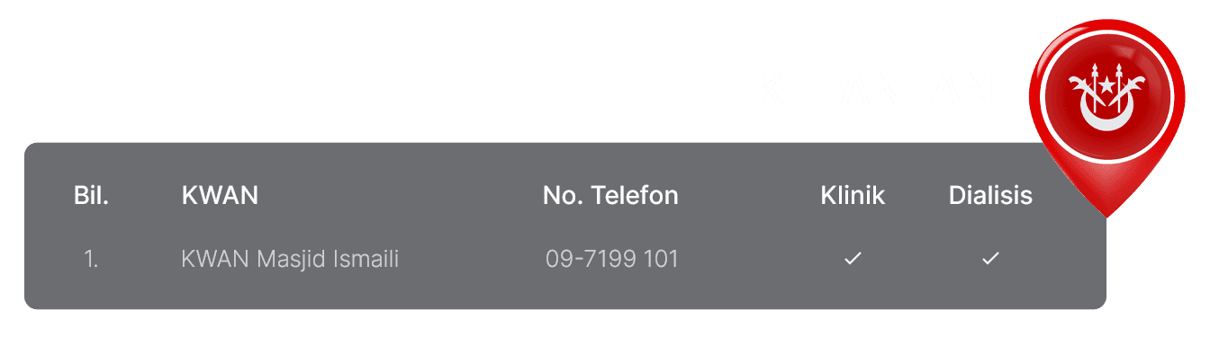 Senarai Klinik, Klinik Bergerak dan Pusat Dialisis Waqaf An-Nur